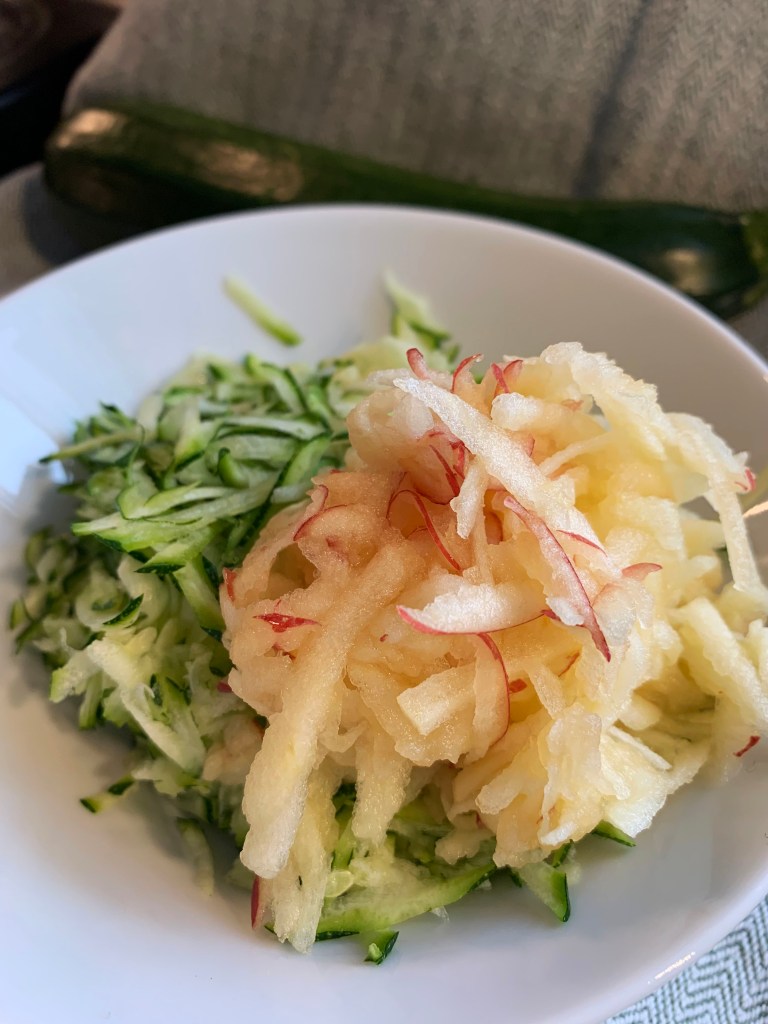 Fancy something tasty for lunch or as a side dish for dinner? This recipe for Zucchini cake taste good and it’s supereasy to make. Zucchini cake is like fritter or pancake, made from grated zucchini. They are typically shallow-fried in olive oil and their batter often includes a mixture of eggs and flour. This one contains also apple and hoisin sauce. Hoisin sauce is one of our new favorites, it taste sour, sweet and salty, and adds the little something we just love. Hoisin sauce is a strong one, so hold your horses! You need to be familiar with its strong taste 🙂