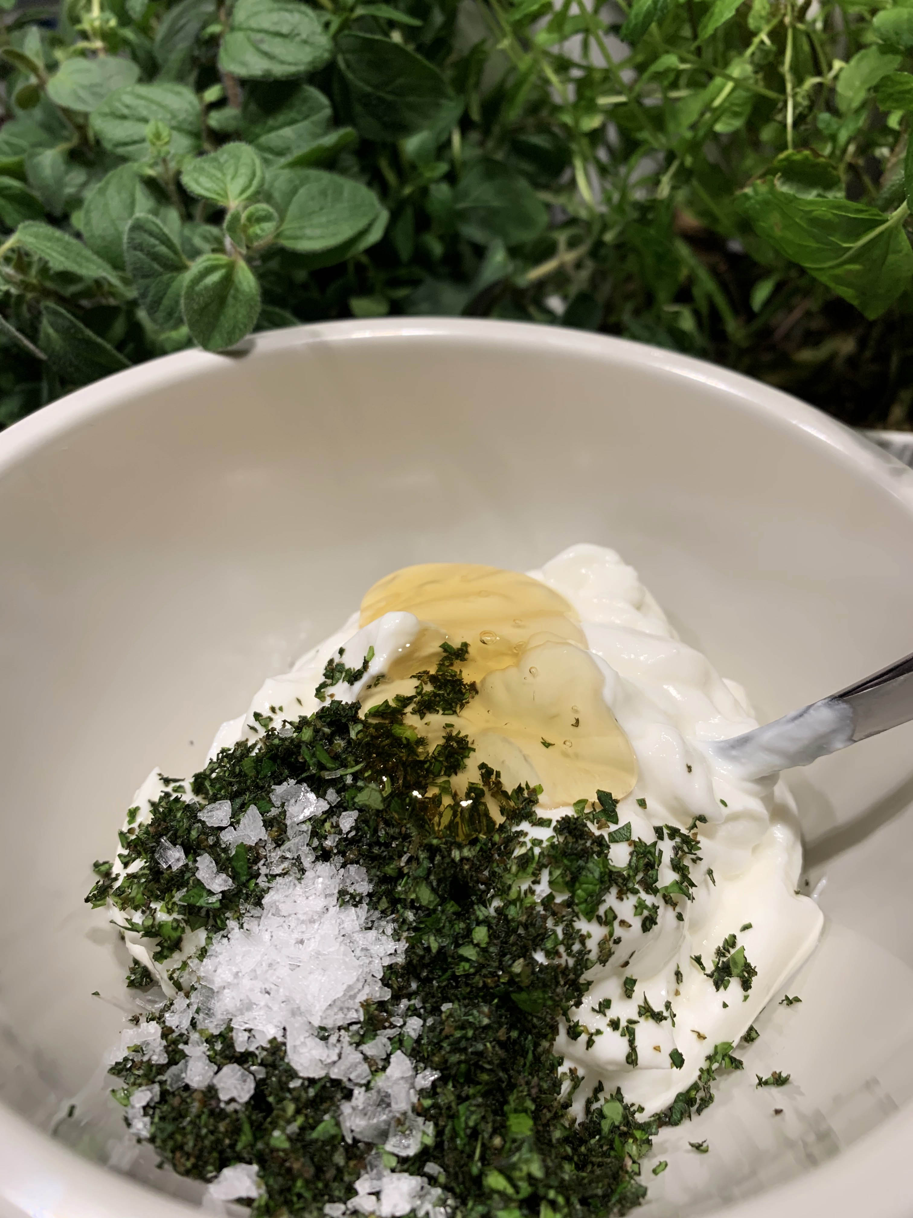 Til slutt kommer oppskriften på yoghurtdressingen: