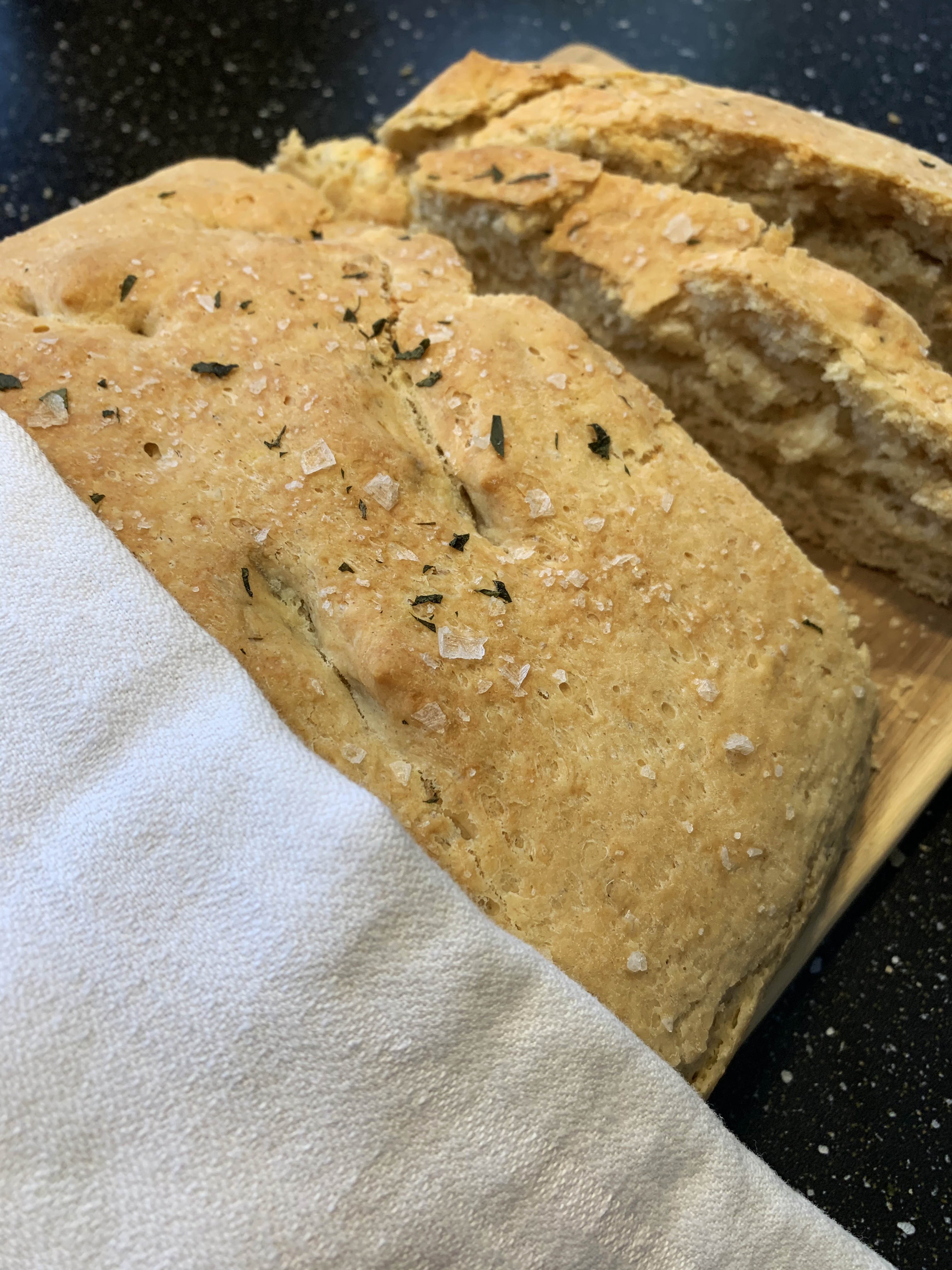 Olive oil, herbs and flaxseed salt for topping