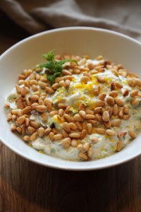 En god yoghurtsalat er ikke å forakte! Den er sjarmerende lett på foten! Med pinjekjerner, sitron, agurk og mynte gir den en syrlig frisk smak. Og er det en tid på året vi virkelig kan fråtse i ferske, kortreiste agurker, er det nå. Denne her matcher også godt til det libanesiske 7 krydderet som er brukt i Kafta. Det libanesiske kjøkkenet bruker også mye aubergine. Den store fordelen med aubergine er at den suger til seg alle gode smaker fra maten rundt. For med litt omsorg og kjærlighet kan aubergine bli en sprø hit du bare vil elske!