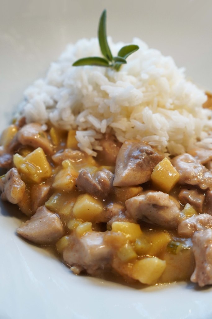 Fresh herbs! Found in almost every grocery stores, they decorate the kitchen, smell pleasantly delicious and gives that little extra something for the taste. In our herb garden, we grow Sage! This year Sage was extra happy and willingly. That may not be so strange after all, because Sage is the herb with a strong mind that likes to dominate. Some call it an insulting and whimsical prima donna. Others loves a nice cup of tea from Sage leaf to help with colds and flu. Here is a recipe with fresh Sage leaves. It fits well now that the apples are ripening on the trees, the chilly autumn definitely has arrived and we enjoy making casseroles inside! Chicken stew with sage and apple cider sauce… Tempting?
