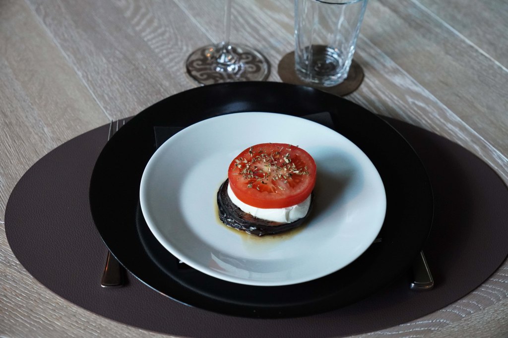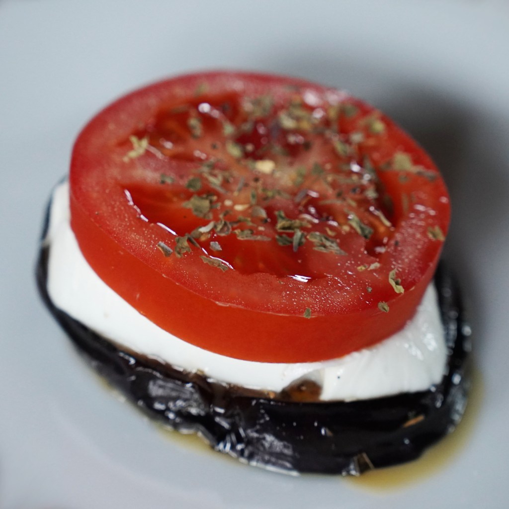 Bruk skikkelig mozzarellaost av ekte bøffelmelk. Den smaker mer, og har en mykere tekstur. Sammen med store, saftige tomater blir dette en saftig rett. Jeg la en tykk mozzarellaskive oppå auberginen, og toppet med en like tykk tomatskive. Så fikk det stå i ovnen på 220 grader i ca 10 min, til osten smeltet og tomaten ble lun.